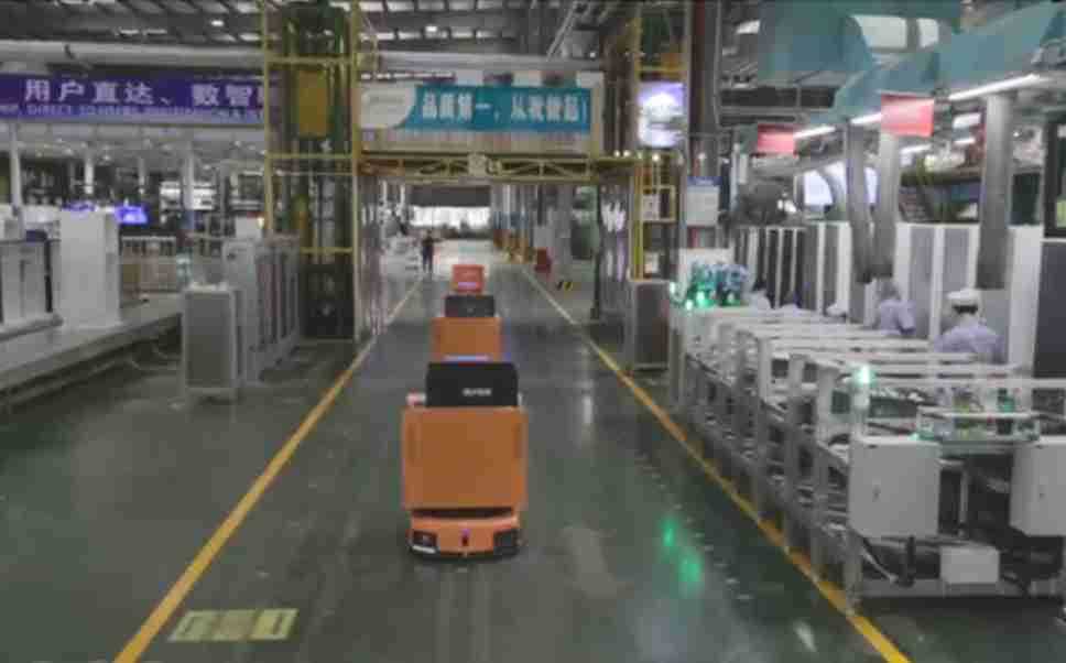为车载冰箱物流配送打造的智能解决方案,,,,包含产中物流通过潜伏举升AMR搬运至线边,,,,产后成品物流智能仓储,,,,流程包含产中物流智能齐套入库,,,线边安灯叫料AMR智能配送至线边,,,,成品入库、、、出库,,,通过无人堆高车机器人,,,,智能仓储管理替代人工作业管理,,实现更高存储、、、、更高效率、、、更具柔性化的解决方案。。。。
